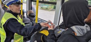 Policjanci drogówki rozdali odblaski pasażerom miejskich autobusów
