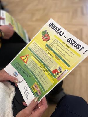 Podczas spotkania policjant omówił najczęściej występujące typy oszustw, od popularnych metod „na wnuczka” przez fałszywe wiadomości sms i e-mail, aż po wyłudzenia danych podczas zakupów na podejrzanych stronach. Wyjaśnił także, jak w prosty sposób weryfikować wiarygodność firm, ogłoszeń czy wiadomości otrzymywanych drogą elektroniczną.