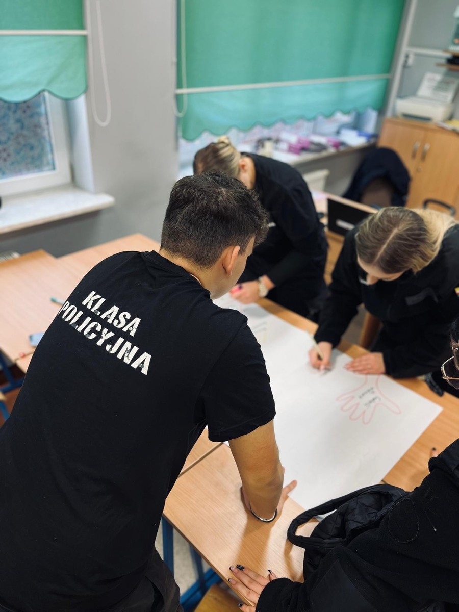 Młodzi ludzie podczas zajęć prowadzonych przez nauczyciela, którym jest zielonogórski policjant młodszy aspirant Kamil Sałek, mieli możliwość dyskusji o tym, co hasła mówiące o równości, wolności czy szacunku znaczyły kiedyś, a co znaczą we współczesnym świecie.