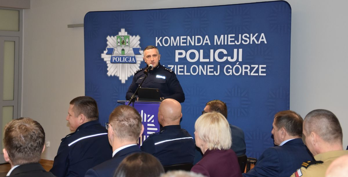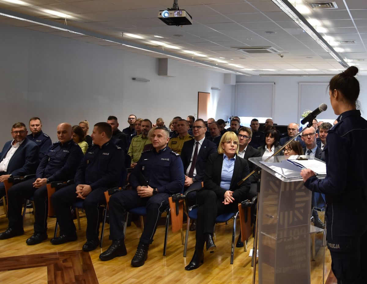 Wczoraj (20.01) o godzinie 11.00 w sali konferencyjnej Komendy Miejskiej Policji w Zielonej Górze odbyła się odprawa roczna podsumowująca działania zielonogórskich policjantów w 2025 roku. W odprawie uczestniczyli zaproszeni samorządowcy z powiatu zielonogórskiego i przedstawiciele współpracujących służb, oraz Komendant Wojewódzki Policji w Gorzowie Wlkp. insp. Jerzy Czebreszuk.