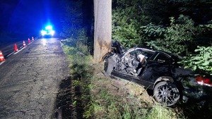 Dziś po północy, na trasie z Łężycy do miejscowości Wysokie, doszło do groźnego zdarzenia drogowego. O sytuacji powiadomiła policję kobieta, która przejeżdżając obok, zauważyła rozbite na drzewie BMW z wystającą przez okno ręką. Do poszkodowanej zmierzał jej kuzyn, który jednak nie dotarł na miejsce, bo okazało się, że jest poszukiwany, dodatkowo miał przy sobie narkotyki.