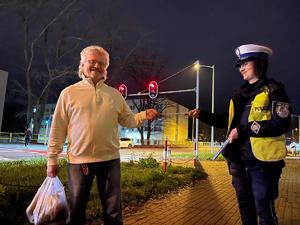 Policjanci rozdają odblaski seniorom w Zielonej Górze