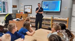 Spotkanie dzielnicowego z uczniami Szkoły Podstawowej numer 1 w Nowogrodzie Bobrzańskim